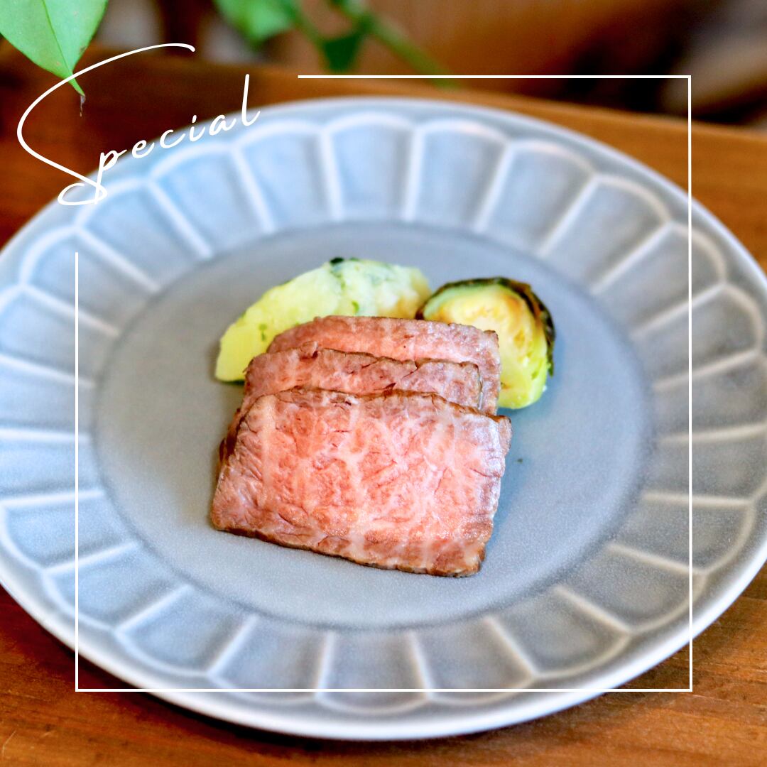 ■原材料:・A5黒毛和牛モモ肉、じゃがいも、芽キャベツ、パセリ